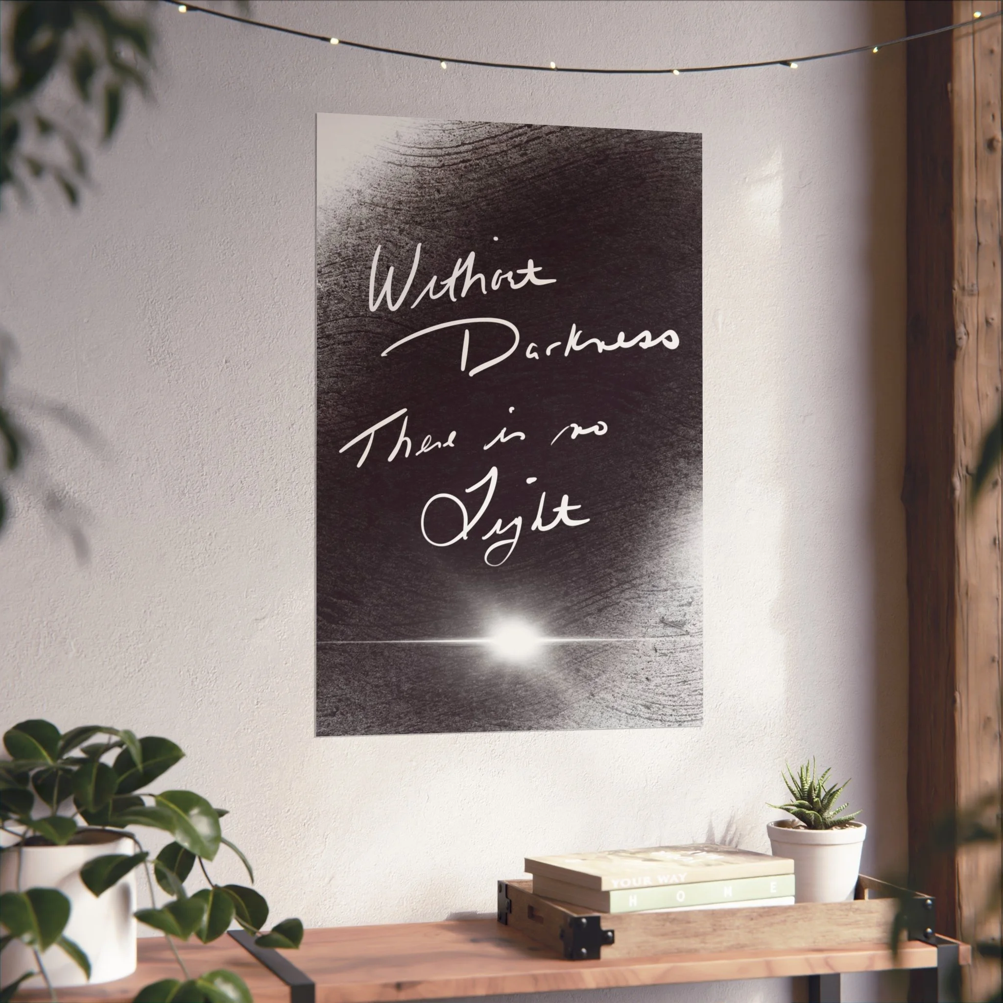 Honor the duality that makes you whole with this striking digital art piece. “Without Darkness There Is No Light” is more than a quote — it’s a reminder that every shadow holds wisdom, and every challenge shapes your rising.