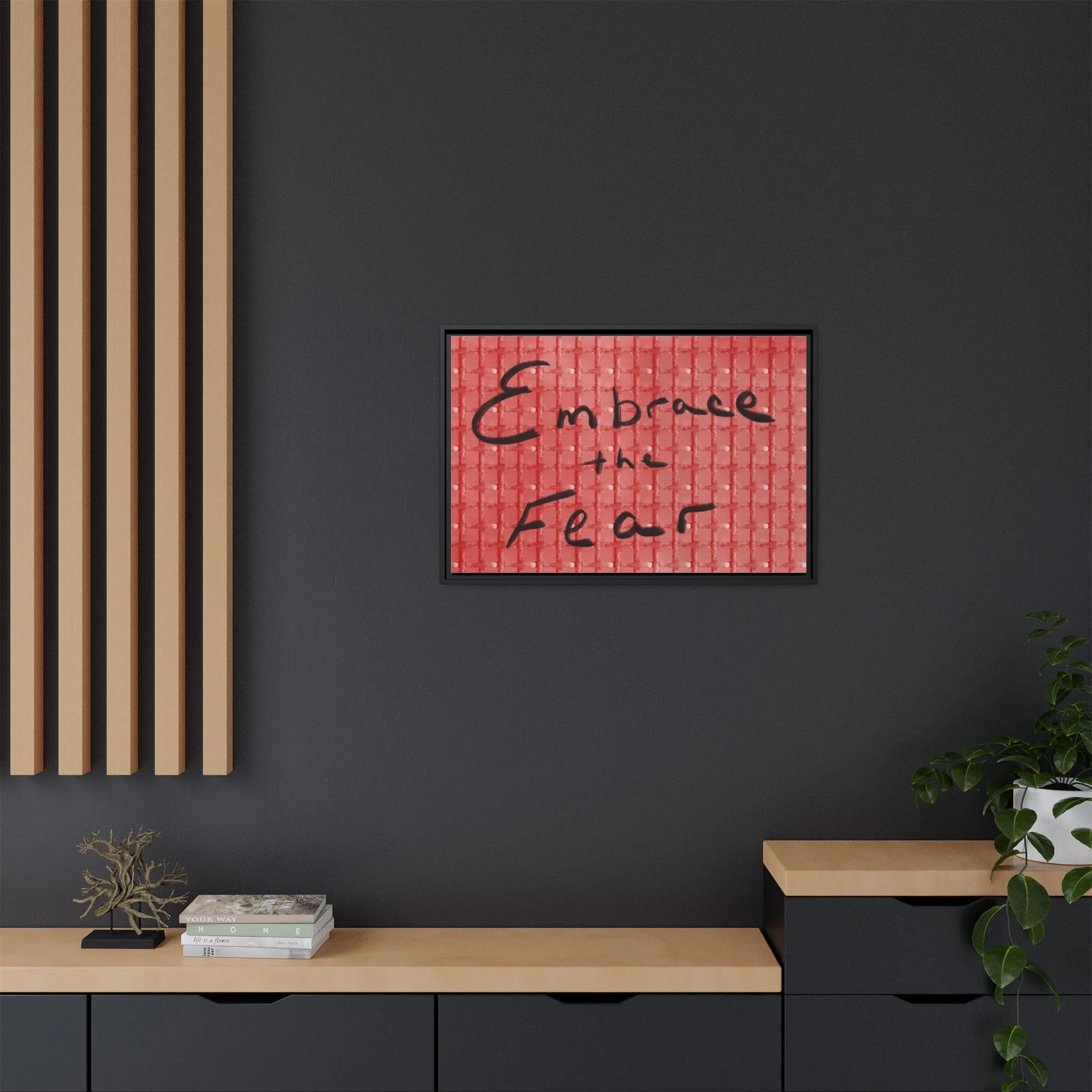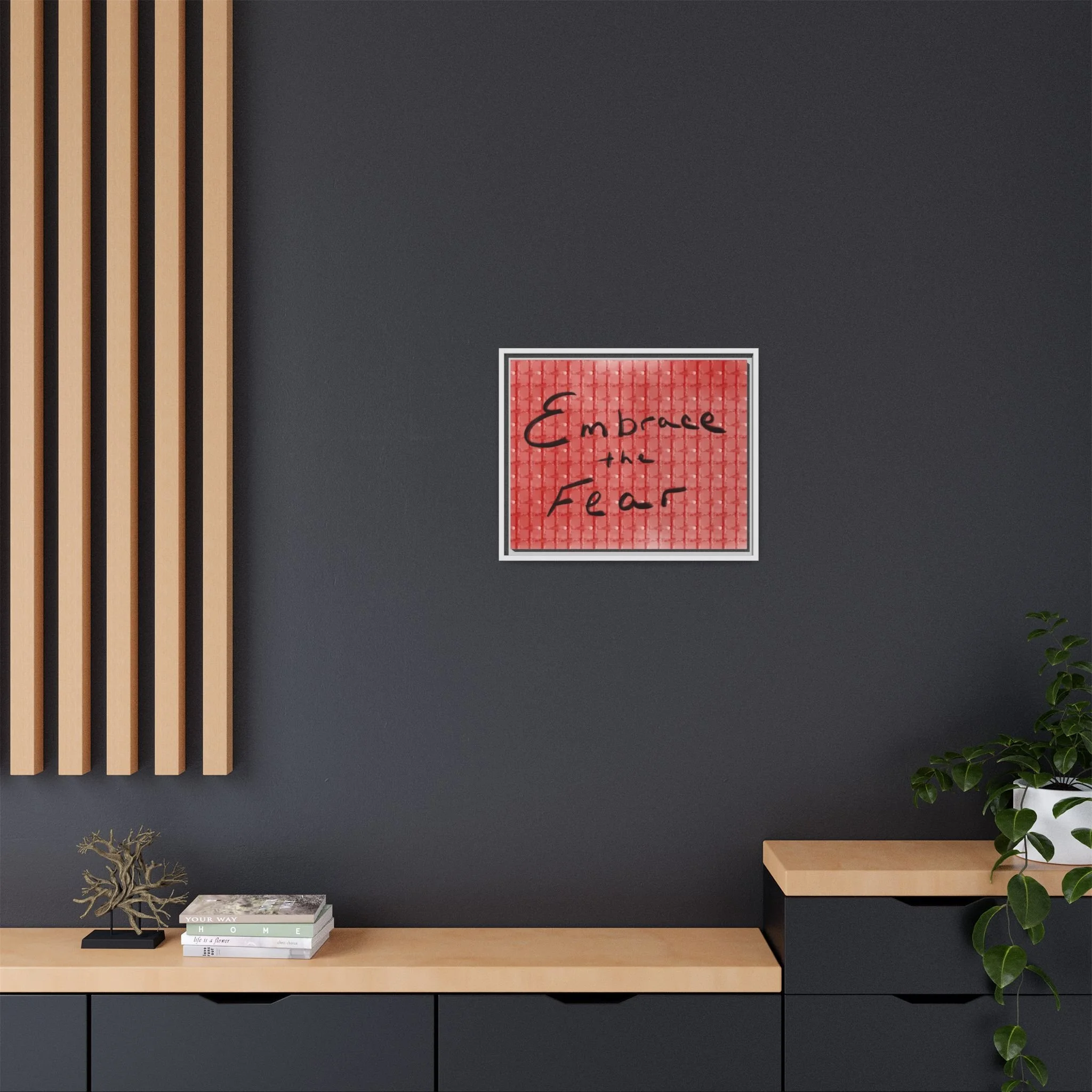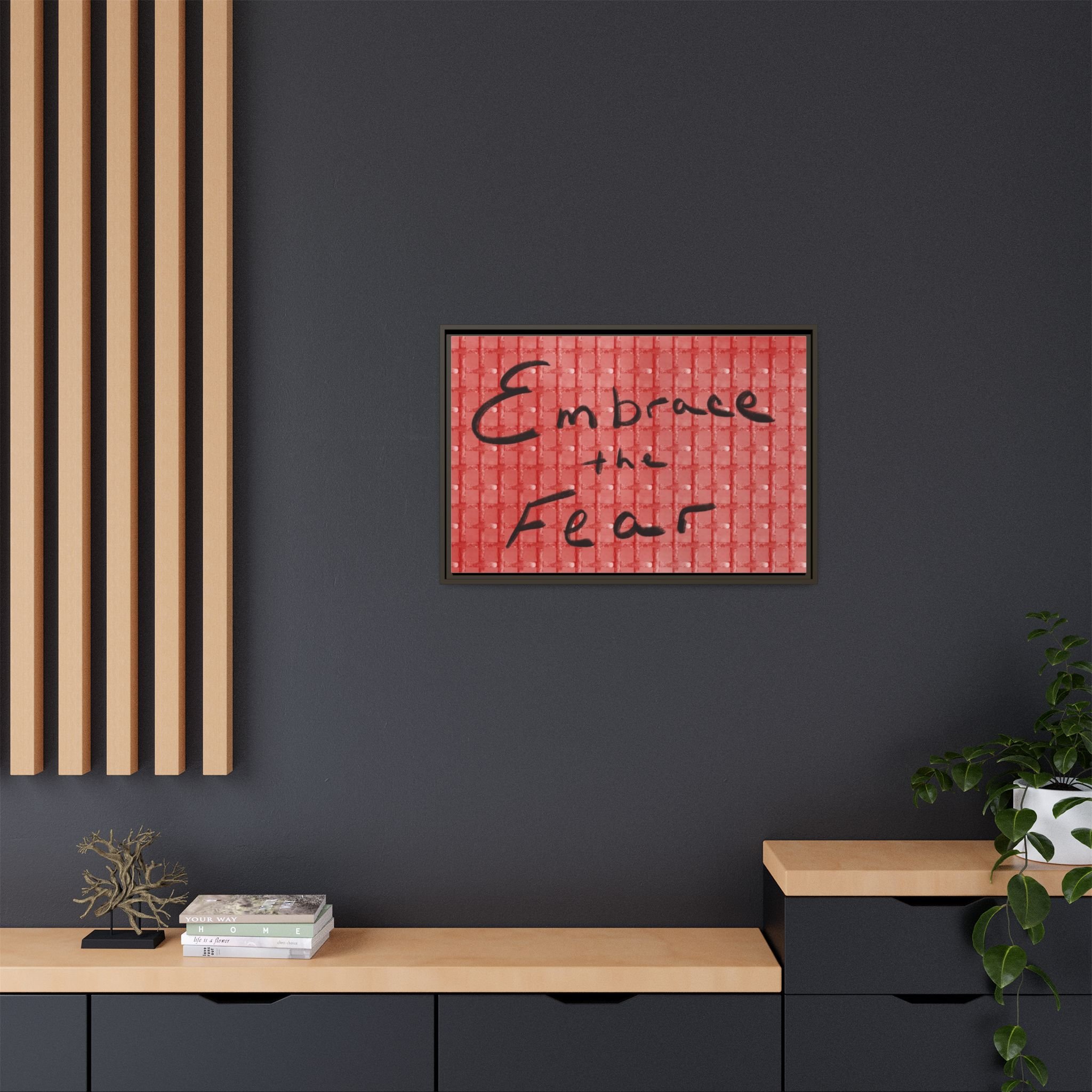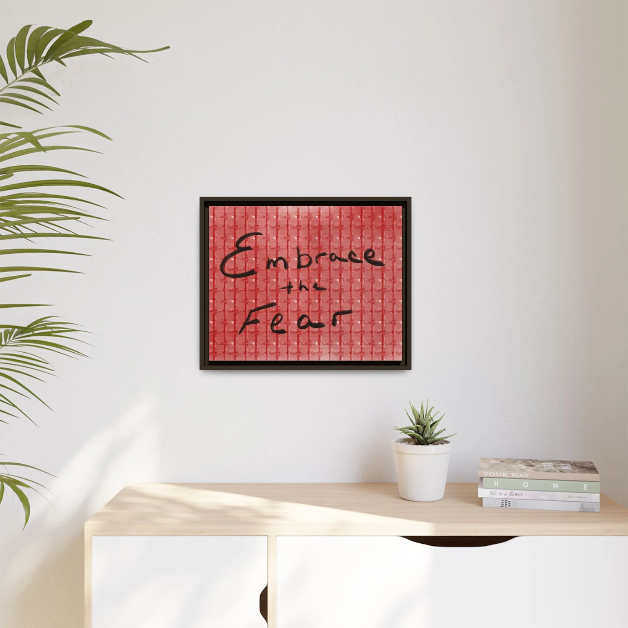 Turn courage into daily inspiration with this bold digital print. Featuring the phrase “Embrace the Fear” in flowing black handwriting against a red background, this artwork serves as a reminder to face challenges, step out of comfort zones, and grow stronger through adversity.