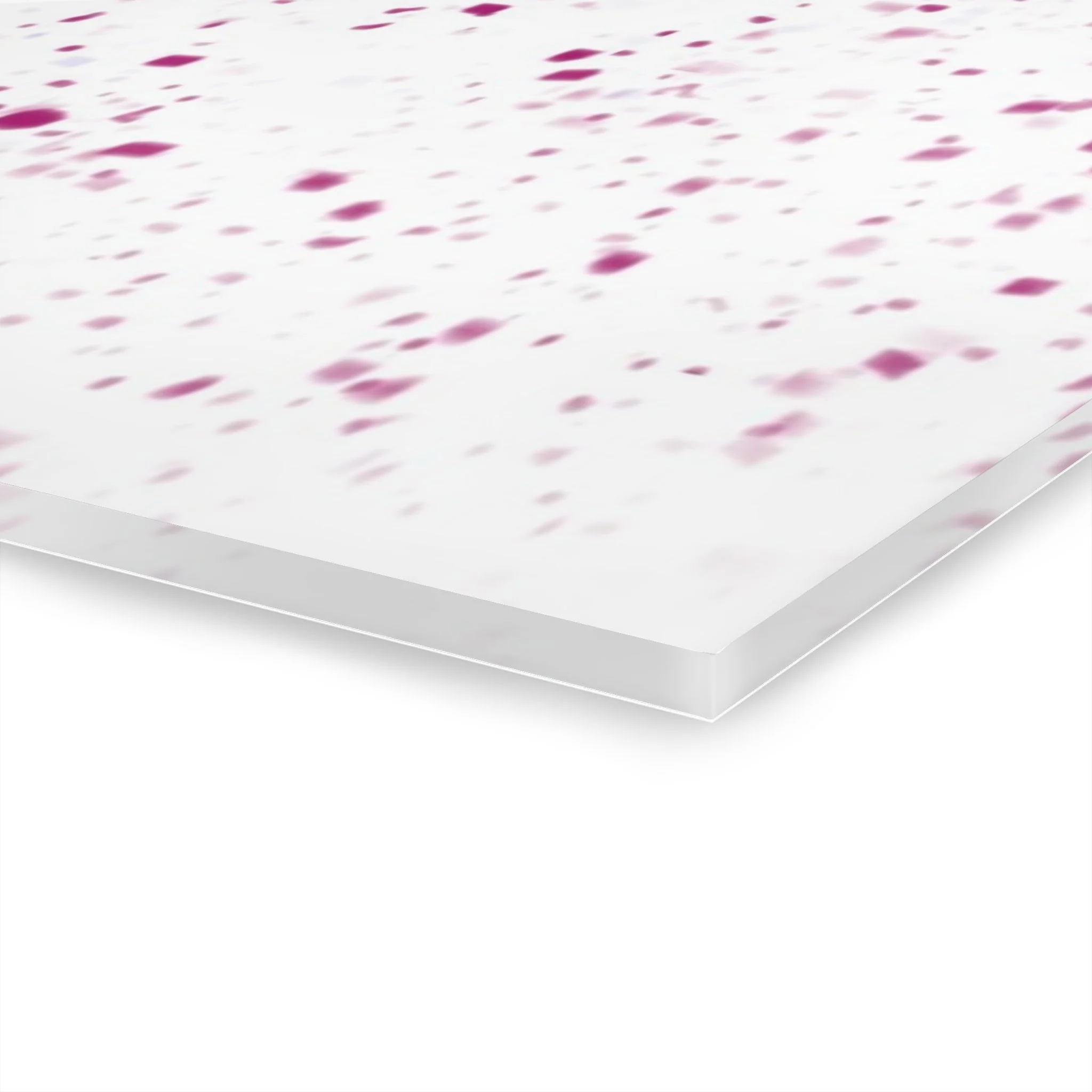 Water-resistant surface for effortless cleaning. French cleat backing for easy and secure hanging; includes setup instructions. 0.25" thick grade-A acrylic with white vinyl backing.