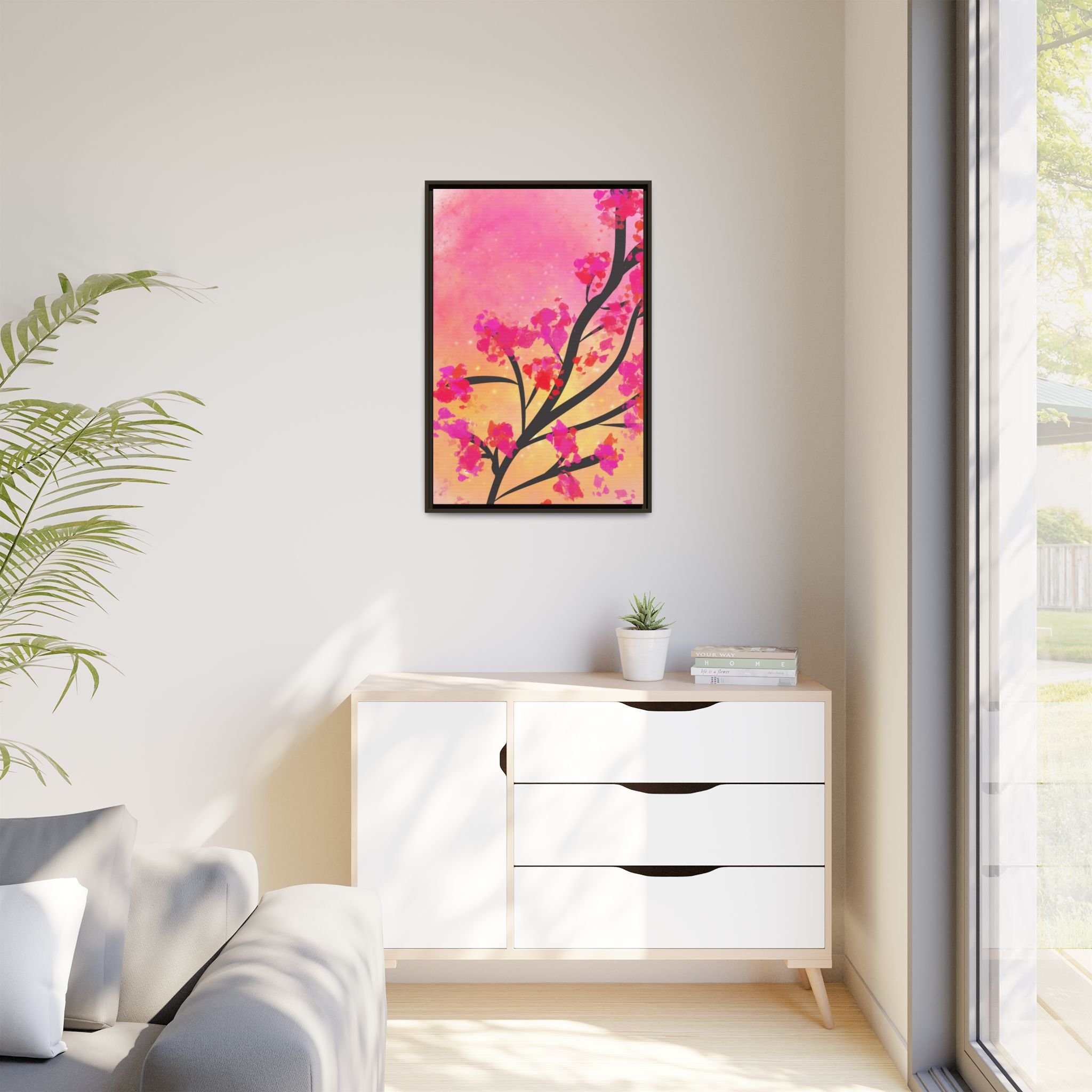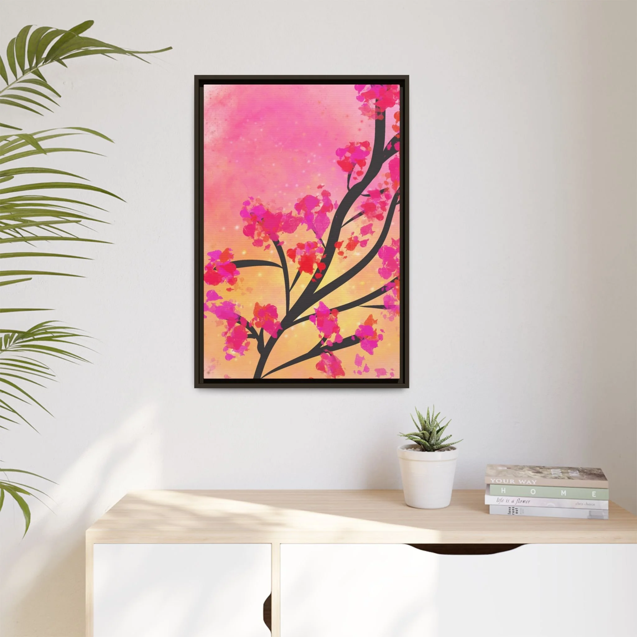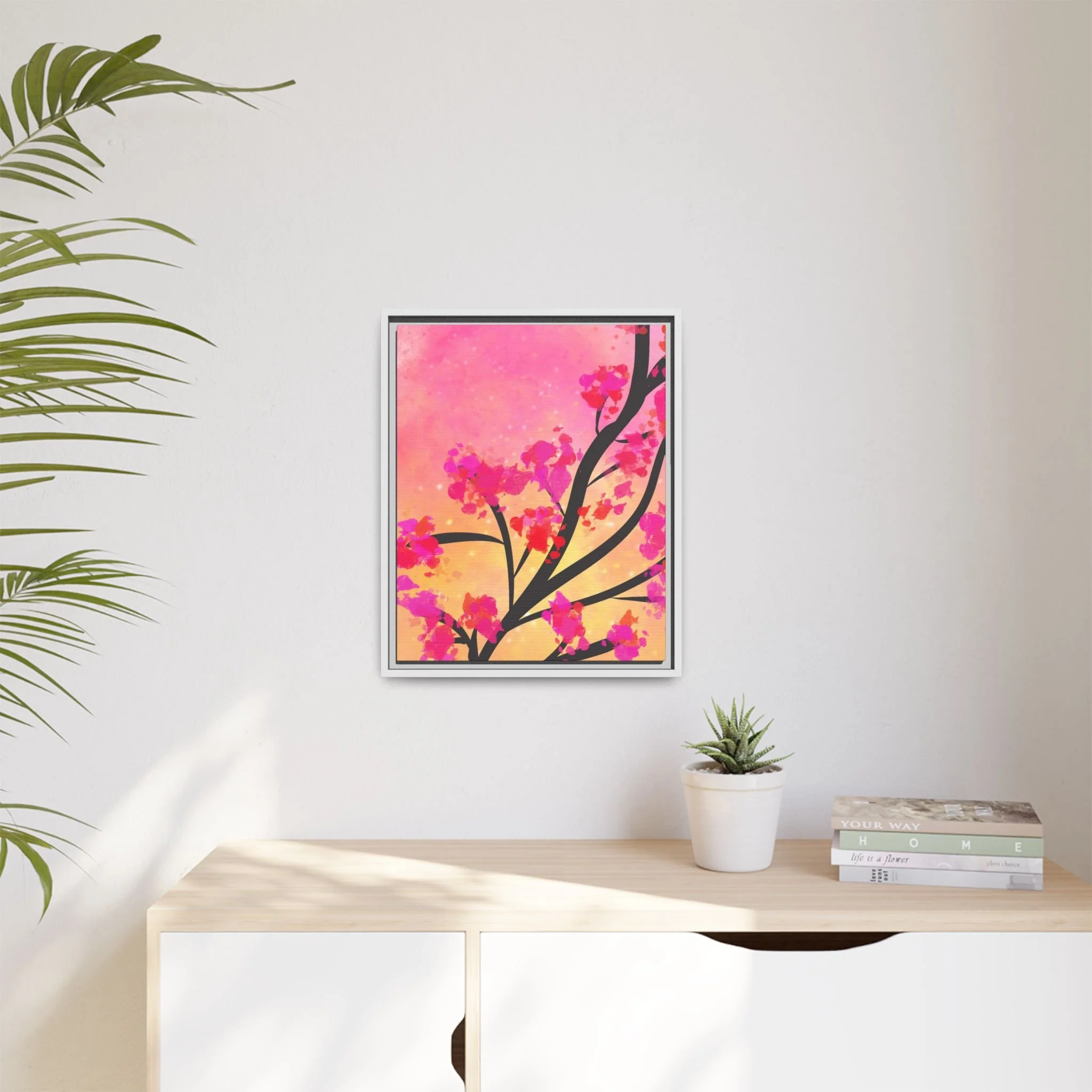 Perfect for adding a splash of color and uplifting energy to any room, this piece symbolizes personal growth, joy, and the gentle unfolding of life’s moments. Its radiant palette of pinks and yellows brings warmth, optimism, and a touch of nature-inspired serenity into your home.
