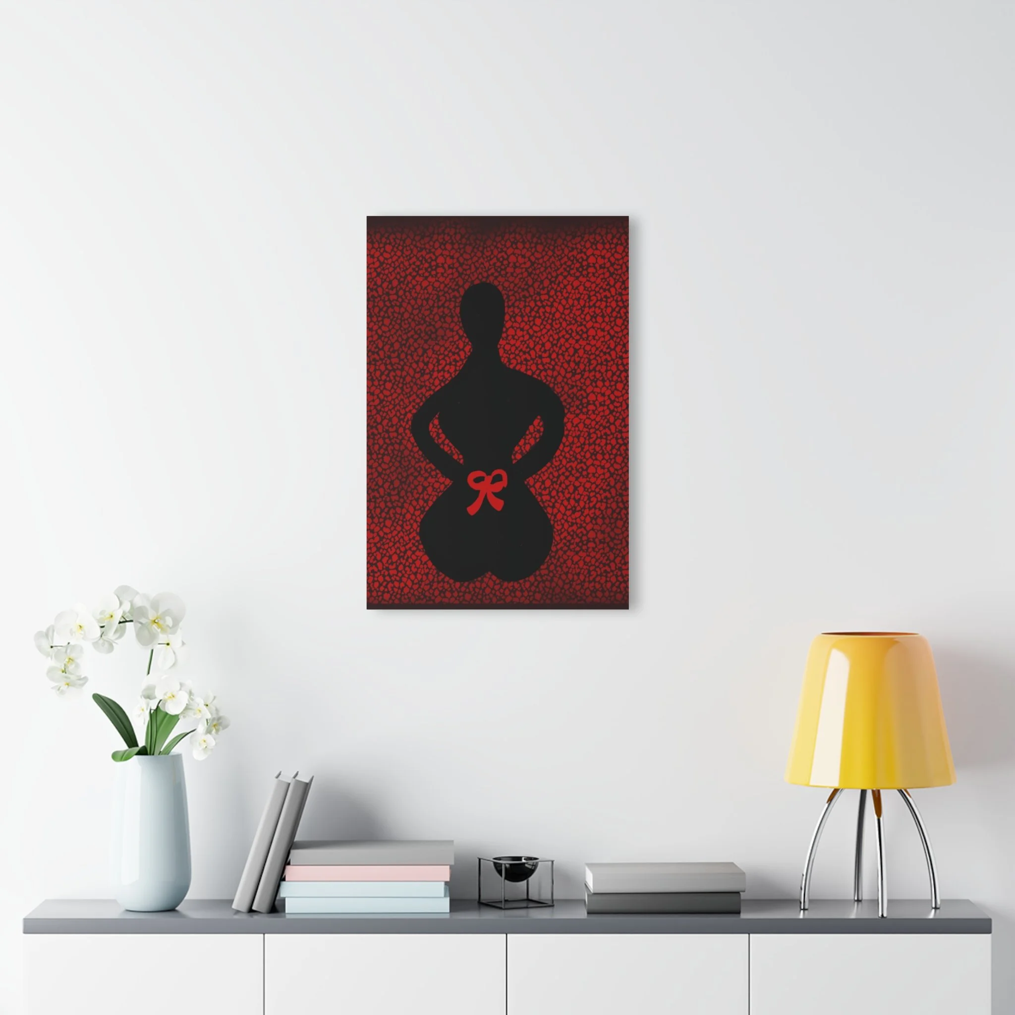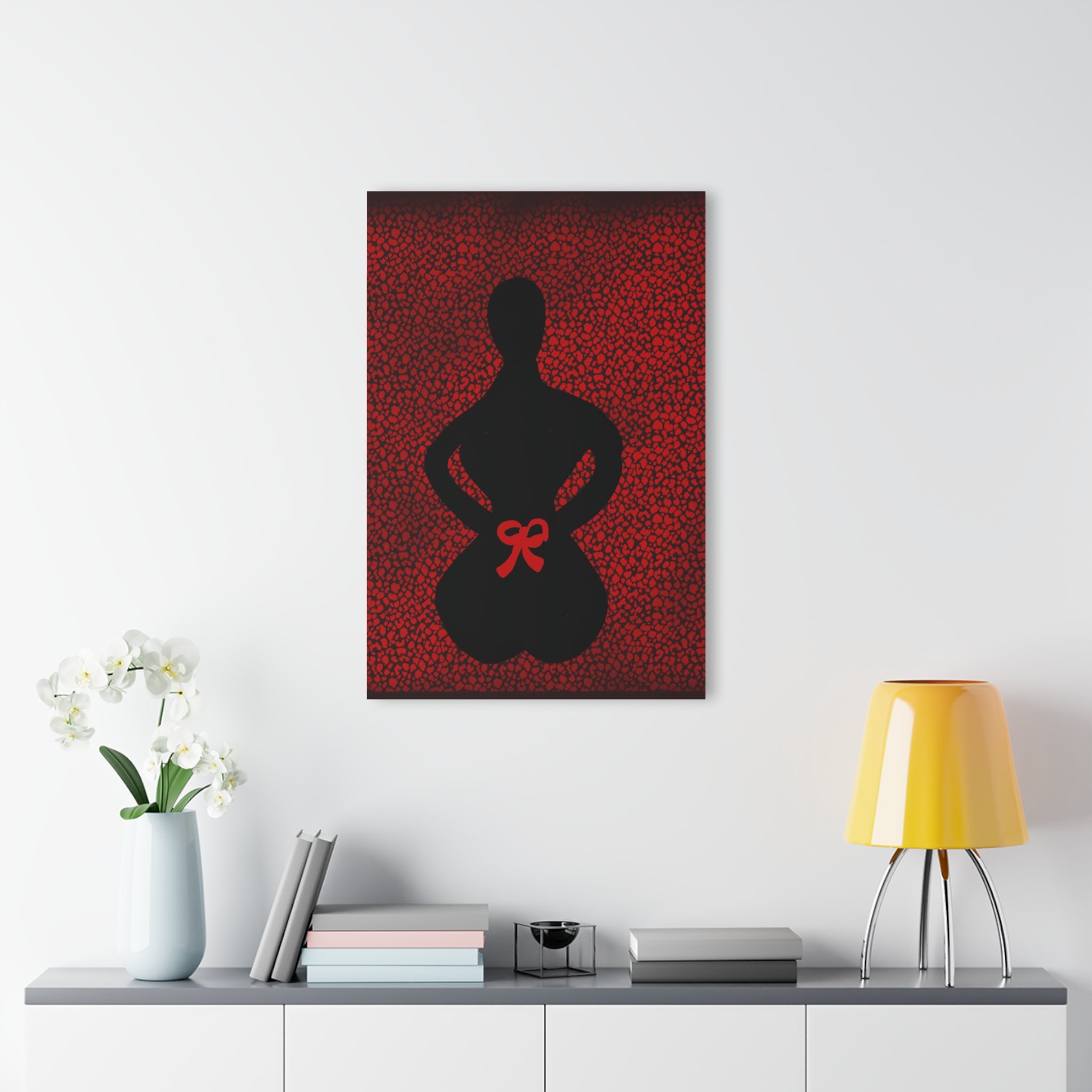 Step into the power of letting go and trusting the flow of life with this evocative digital artwork. Against a striking red background, the shadow of a kneeling woman symbolizes surrender, release, and the quiet strength found in vulnerability.